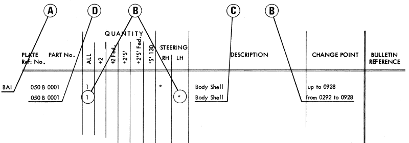 5. Read across from the Plate Reference Number to the appropriate QUANTITY Column referring also to the STEERING Position Column.